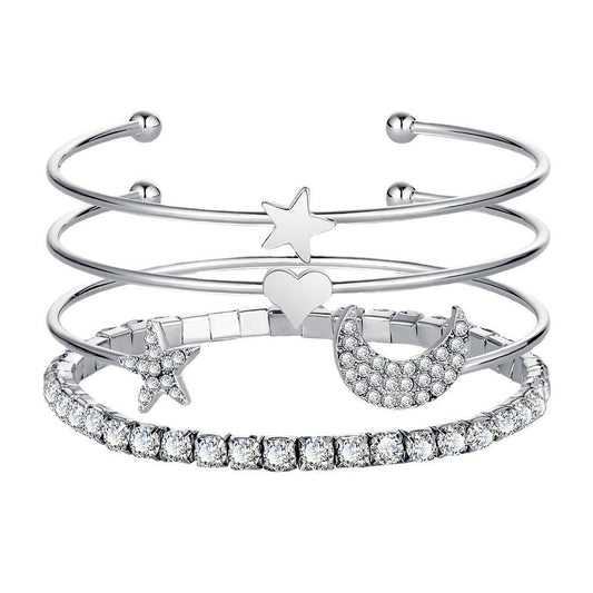 Women Moon Stars Cuff Bracelets Bangles Simple Gifts