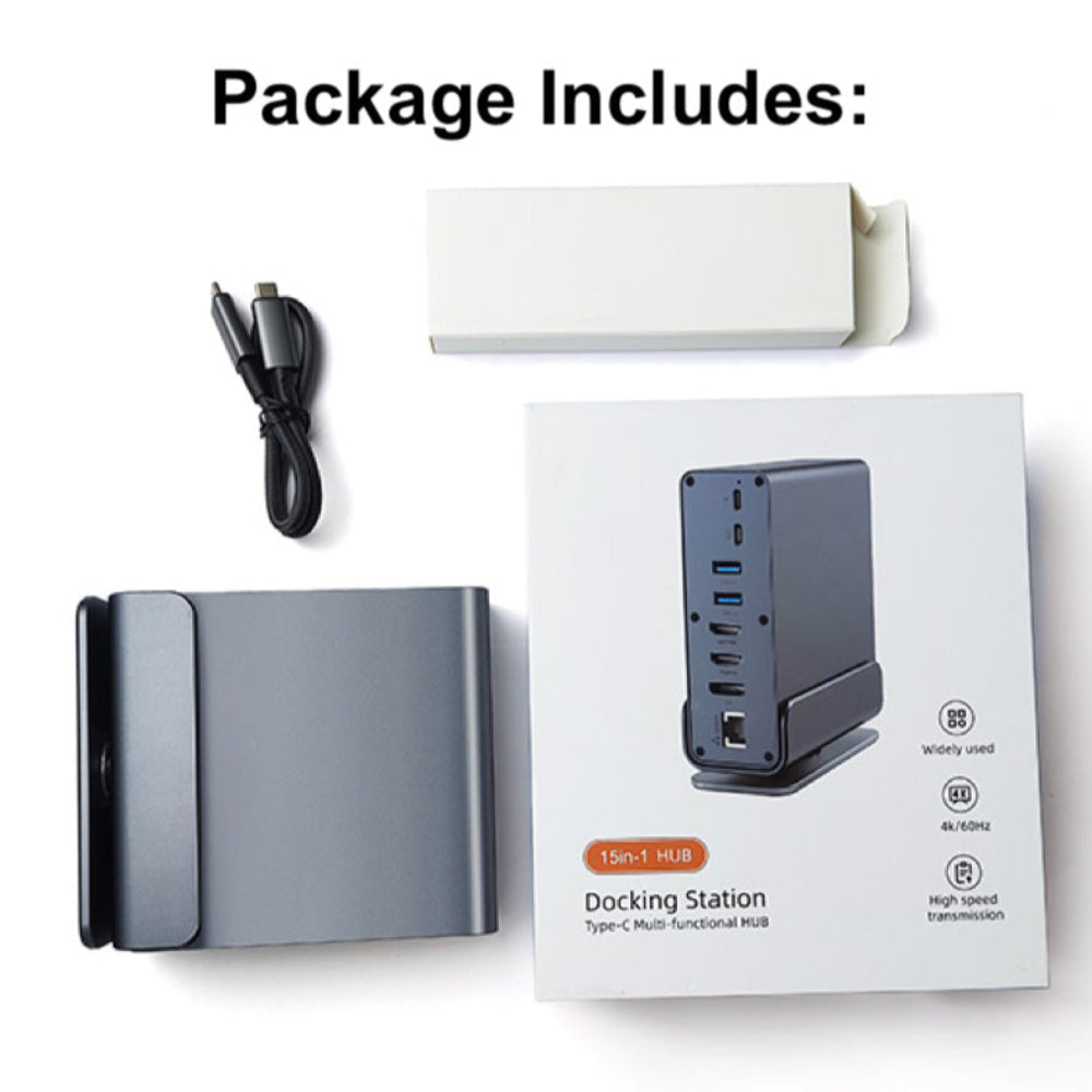 15 in 1 Type C Docking Stand Station Hub Supports Multiple Monitors