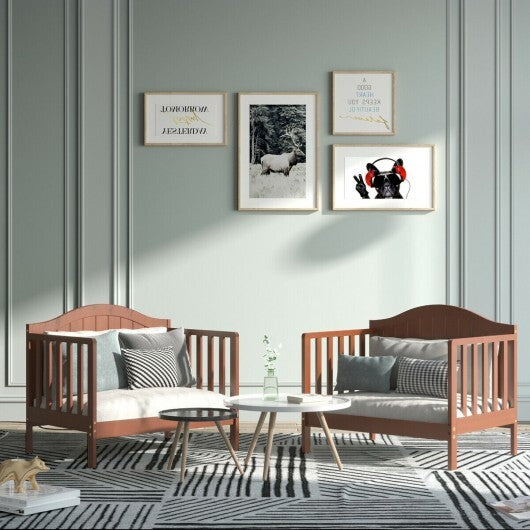 2-in-1 Classic Convertible Wooden Toddler Bed with 2 Side Guardrails for Extra Safety-White