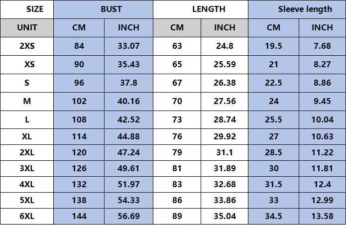 Size: XXS,XS,S,M,L,XL,2XL,3XL,4XL,5XL,6XL,100,110,120,130,140,150,160