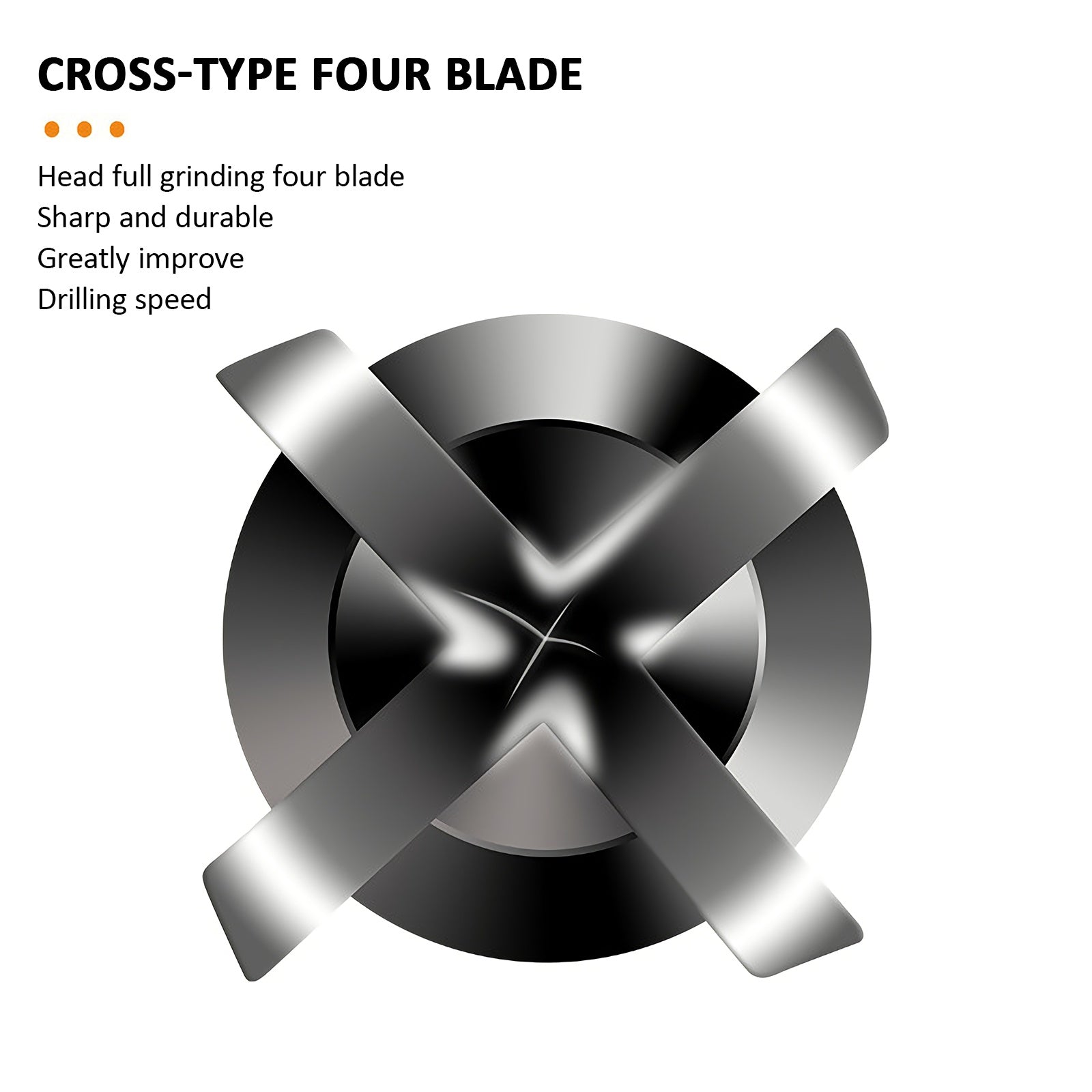 - The tip is 4-blade design, sharp blade can make the work more efficient and fine. U shape spiral chip flute design, drill more smoothly