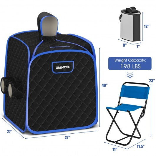 800W 2 Person Portable Steam Sauna Tent SPA with Hat Side Holes 3L Steamer-Gray