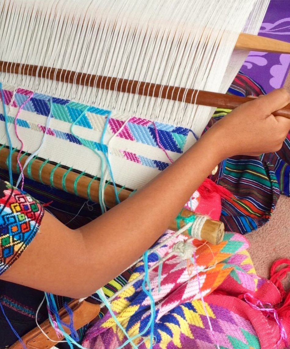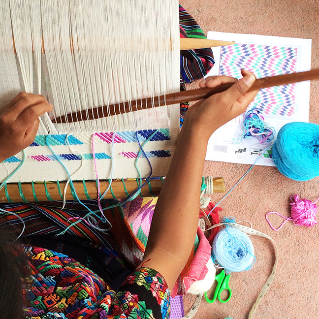 This textile represents fresh new color combination of a traditional textile from Almolonga, Guatemala. It was woven by artisans using a back-strap loom, a time honored method of weaving. This pillow was made in partnership with a non-profit organization on Lake Atitlan, Guatemala.