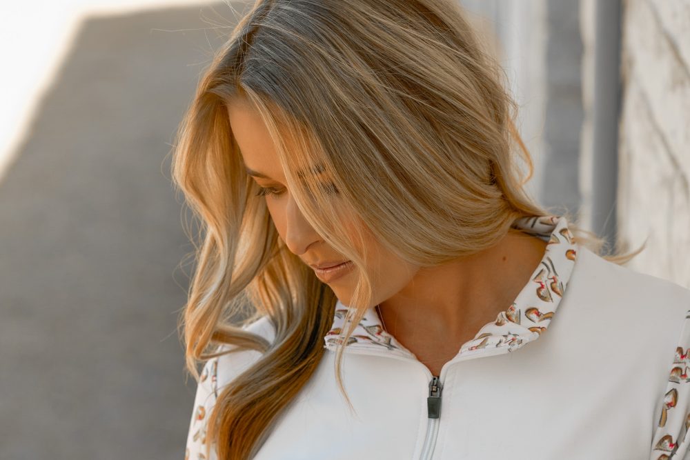 An intuitive horse painting designed into the look and feel of equestrian apparel becomes a signature experience for the rider, as she “wears her love of horses, her heart, on her sleeve”. Select, curated images from the Donna B Art portfolio make personal and stylish the natural movement of the equine; our rider dreams her horse, dreams her ride, and wears it. She is a vision for herself and her horse, uniquely inspired to perform her best.