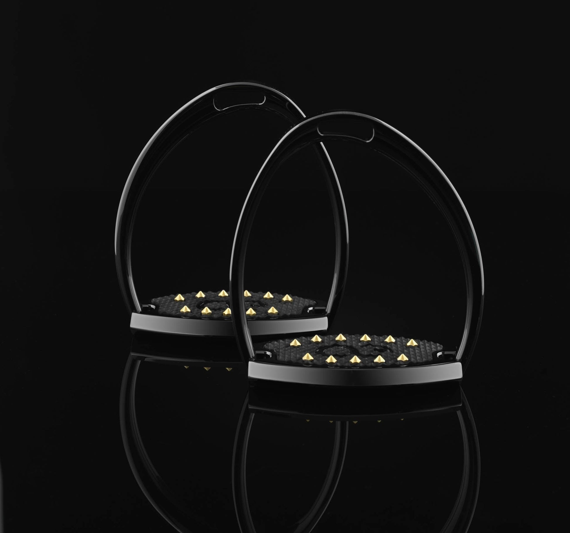 Our collection of Polo-Polo Irons incorporates ergonomically designed branches that naturally contour your legs around the barrel of the horse, easing knee, ankle and foot pressure. The patent-pending proprietary traction pin system secures your foot and provides for an unparalleled connection to the base of the stirrup. The Foot Bed shape design is modeled from the natural contact area of the ball of the foot for better tactile engagement, comfort, and overall balance. The Aft edge of the footbed is angled for easier ingress, and to soften the break over angle at the arch of the foot when riding heel down. In addition, the Foot Bed center of contact is offset slightly outboard in relation to the saddle leather strap. This imposes a small inboard force to counter the natural tendency to push the stirrup away from the horse without extra effort form the rider. This redistribution of weight across the whole foot can also translate to a more correct seat position in the saddle. The solid CNC Milled 6061 Aircraft Aluminum construction provides an incredibly safe ride with a 3000 lb/sq.in. lateral crush strength protecting your feet against possible injury in the event of an accident.