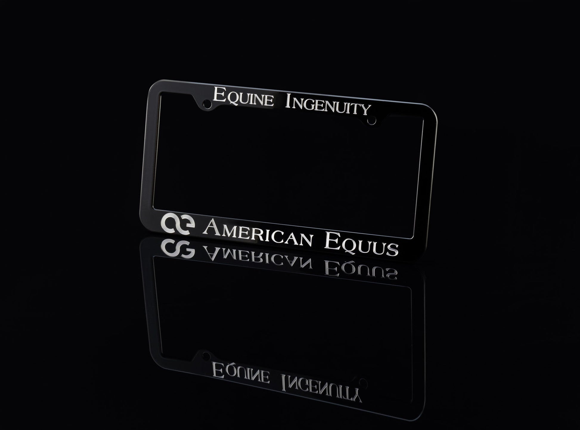The American Equus Signature License Plate Frame is crafted from solid Billet Aluminum. Made with our superb American manufacturing quality, this solid billet license plate frame is perfect for your car or truck. Powder Coated in our Illusion Black then contrast cut for a beautiful finish.