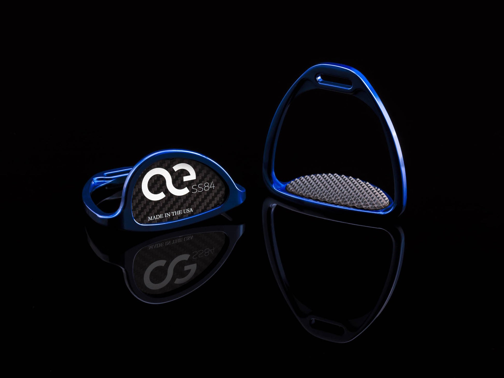 The American Equus SS84 Thoroughbred Racing Irons offer a slightly larger footbed than our SS77 generation of ultra-light thoroughbred racing irons! The SS84 Racing Irons are sculpted from a single 6-pound solid block of 6061-T6 Aircraft Aluminum in which is CNC milled down to a feather-light 72 grams. The unique and innovative Carbon Fiber footbeds are bonded to our traction rubber for jockeys who prefer more boot on their irons. The one-piece design and Aircraft Quality Billet Aluminum provides extreme lateral crush strength in the starting gate. This combined with our exclusive comfort Rubber Traction system allows for the most secure footing with minimum boot contact. The irons are hand-polished to perfection then custom finished to the color of rider’s or owner’s desires.