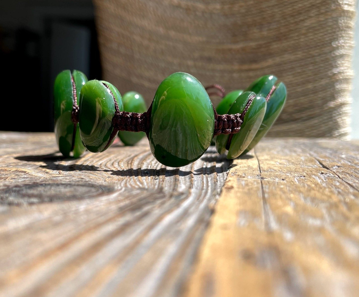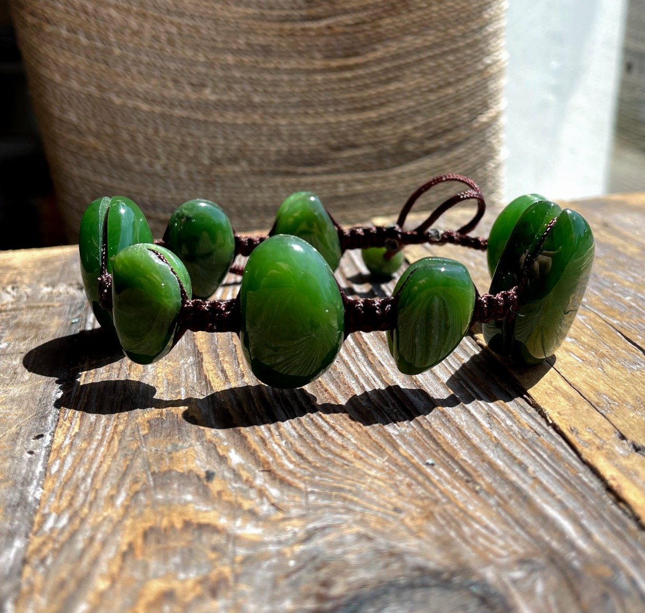 Jade Bracelet, corded with macramé cord with an adjustable closure.