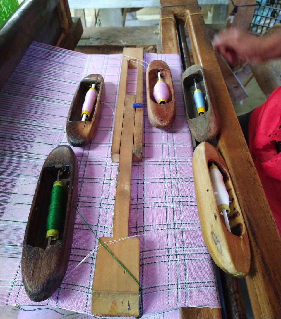 Lilac plaid kitchen towel, ethically handwoven by artisans in Chiapas, Mexico on traditional footlooms. With hints of light blue and forest green, this updated classic plaid will be a lively addition to your kitchen or bathroom.