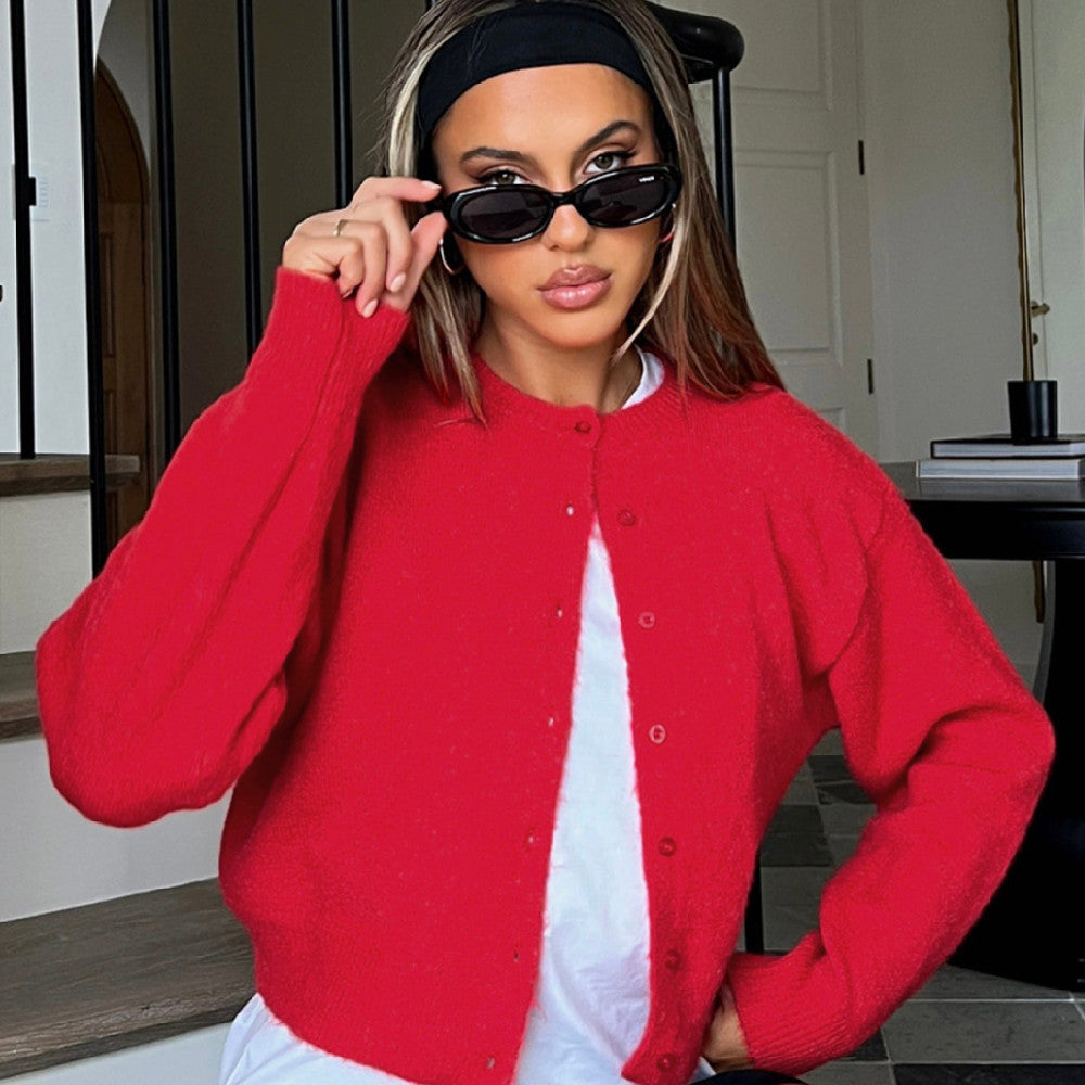 Comfort And Casual Solid Color Woolen Cardigan Short Coat Top Sweater
