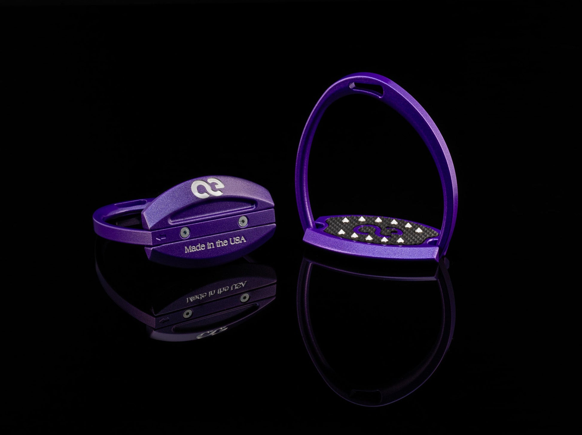 Customize and Build Your Own luxury crafted and engineered for performance Elite stirrups. The Elite Stirrups incorporate ergonomically designed branches that naturally contour your legs around the barrel of the horse, easing knee, ankle and foot pressure. The proprietary traction pin system secures your foot and provides for an unparalleled connection to the base of the stirrup. The wide base of the footbed helps you to achieve optimum balance while absorbing concussion to the ball of your foot. This redistribution of weight across the whole foot can also translate to a more correct seat position in the saddle. The solid 6061 Aircraft Aluminum construction provides an incredibly safe ride with a 3000 lb/sq.in. lateral crush strength protecting your feet against possible injury in the event of an accident.
