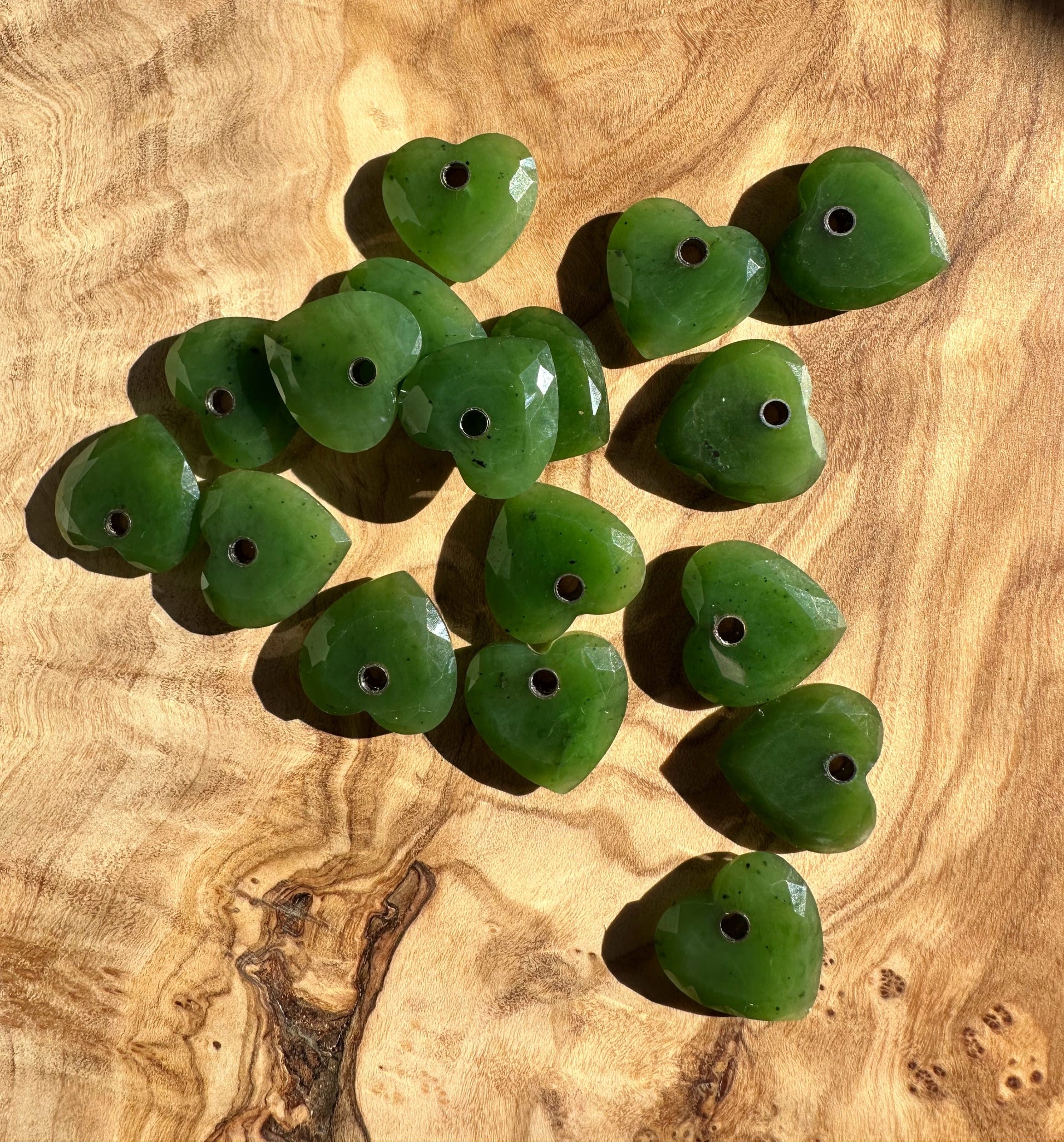 Loose Canadian Jade Faceted Heart, with stainless steel surrounding the hole.