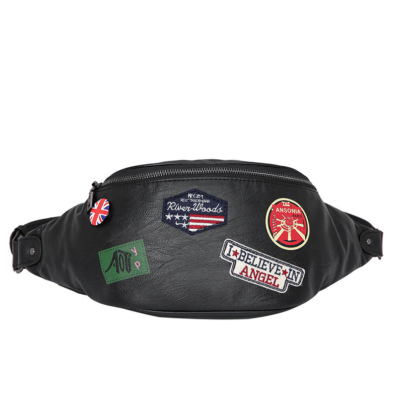 Fashion Leather Young Men's Individual Badge Shoulder Bag Waist Bag