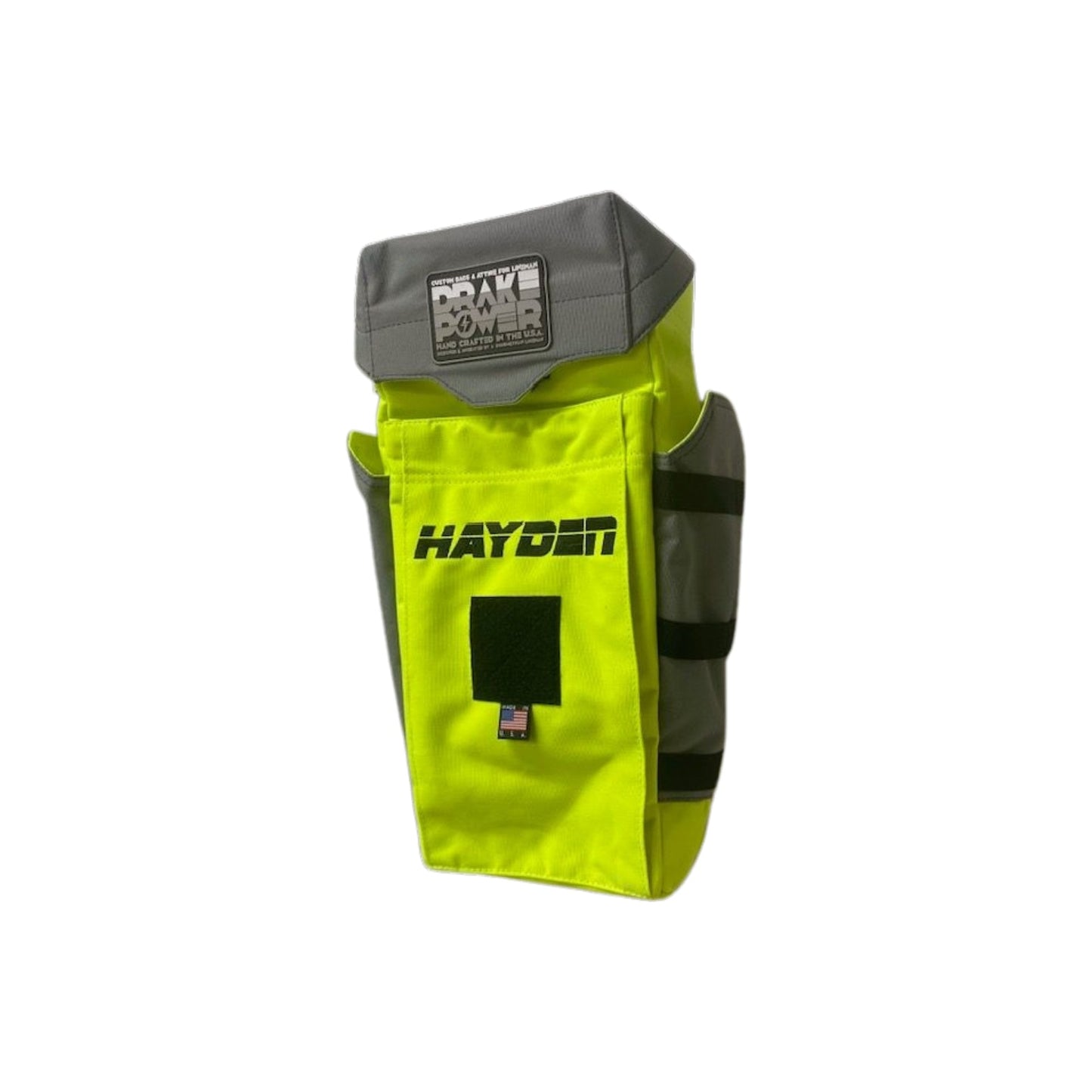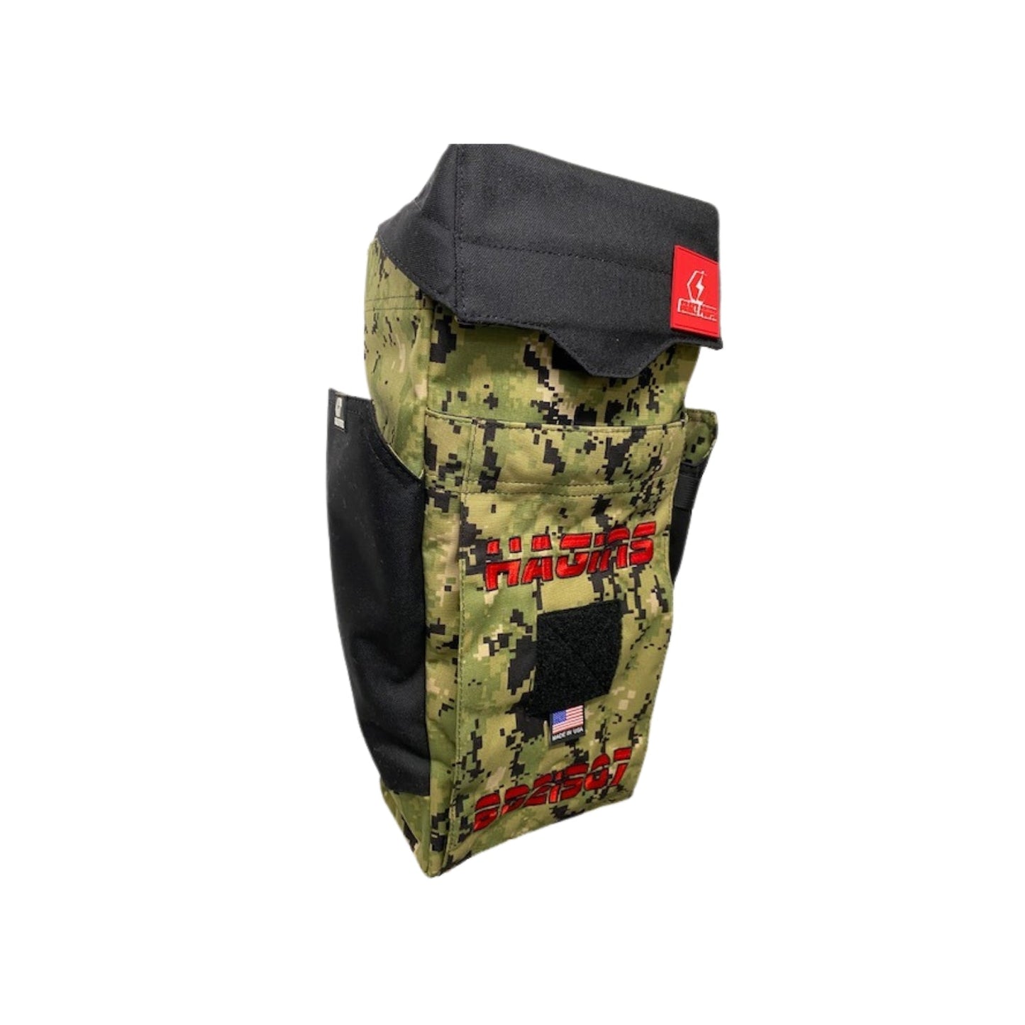 This bag was made after many requests for a "glove only" bag. For all of our men out there who don't have to wear sleeves. The bag features the main compartment for your primary gloves. The 2 side pockets act as an easy location to store your work gloves when you transition to your rubbers or a multi-meter. The bag is made from Cordura fabric. It features an inward seam that makes the bag more streamline and less susceptible to snagging. For quick and easy storing hanging on your bucket each and every bag comes with a rated carabiner. With everyone of our bags you get to customize your bag. You get choice of color ways, choice of embroidery, and choice of what color your embroidery will be.