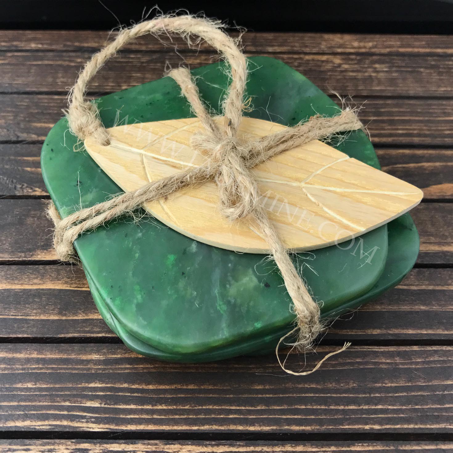Set of 4 jade coasters, each piece of jade has slightly different measurements they measure approximately 3.4" x 3.4"