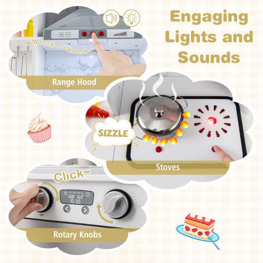 Kids Corner Wooden Play Kitchen with Range Hood and Stoves-Gray