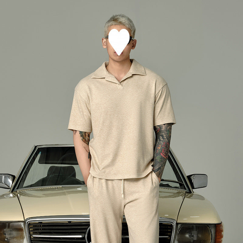 Lapel Short-sleeved T-shirt Men's Casual Top And Trousers Suit
