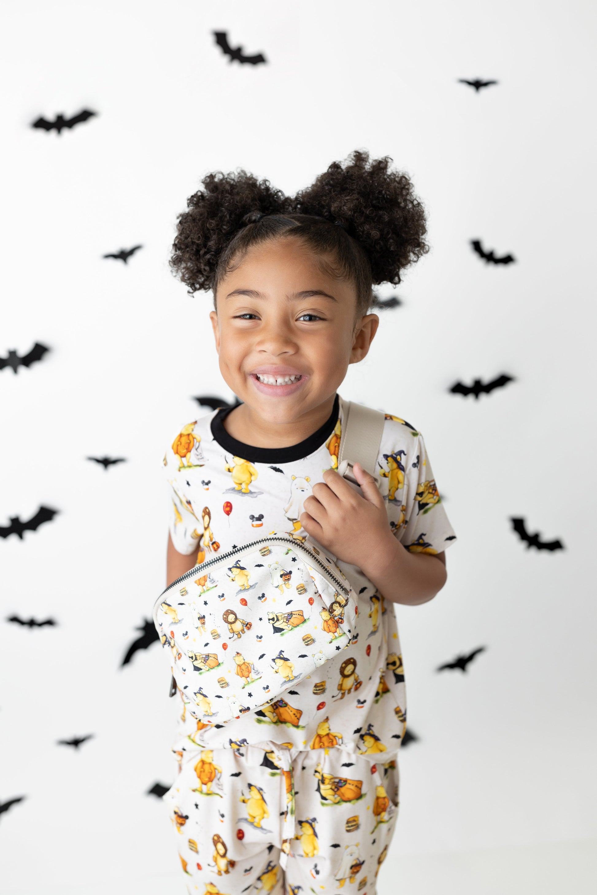 The bag can be worn crossbody or around your waist. Perfect for a day at the parks so you're not constantly carrying your essentials in your pockets or a large purse.