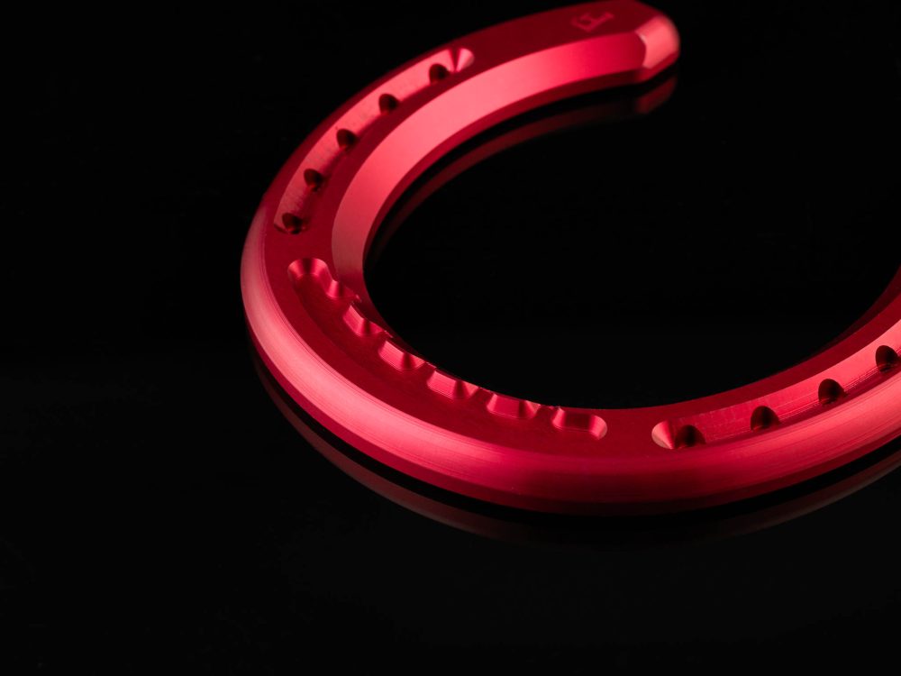 The rich color finish is not only beautiful but also extremely functional. The Deep Anodizing provides a anti-microbial barrier between the top of the shoe and hoof wall that inhibits oxidation and fungus growth which is a typical problem with aluminum shoes in high moisture environments. In addition, the Anodizing process exclusive to the MonoBloc ,shoes has been proven to help prevent White Line Disease, the Coloring is a byproduct of this process, thus making this one of the most desirable performance horseshoes on the market. The color will remain on the outer rim and on the clips (Sport Edge Shoe) for the shoeing cycle.