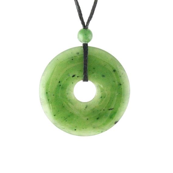 A traditional Jade Pendant. Threaded on a braided waxed cord, available with or without our Hand Crafted Wooden Display Box.