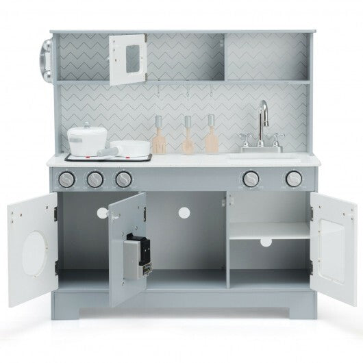 Pretend Play Kitchen Wooden Toy Set for Kids with Realistic Light and Sound