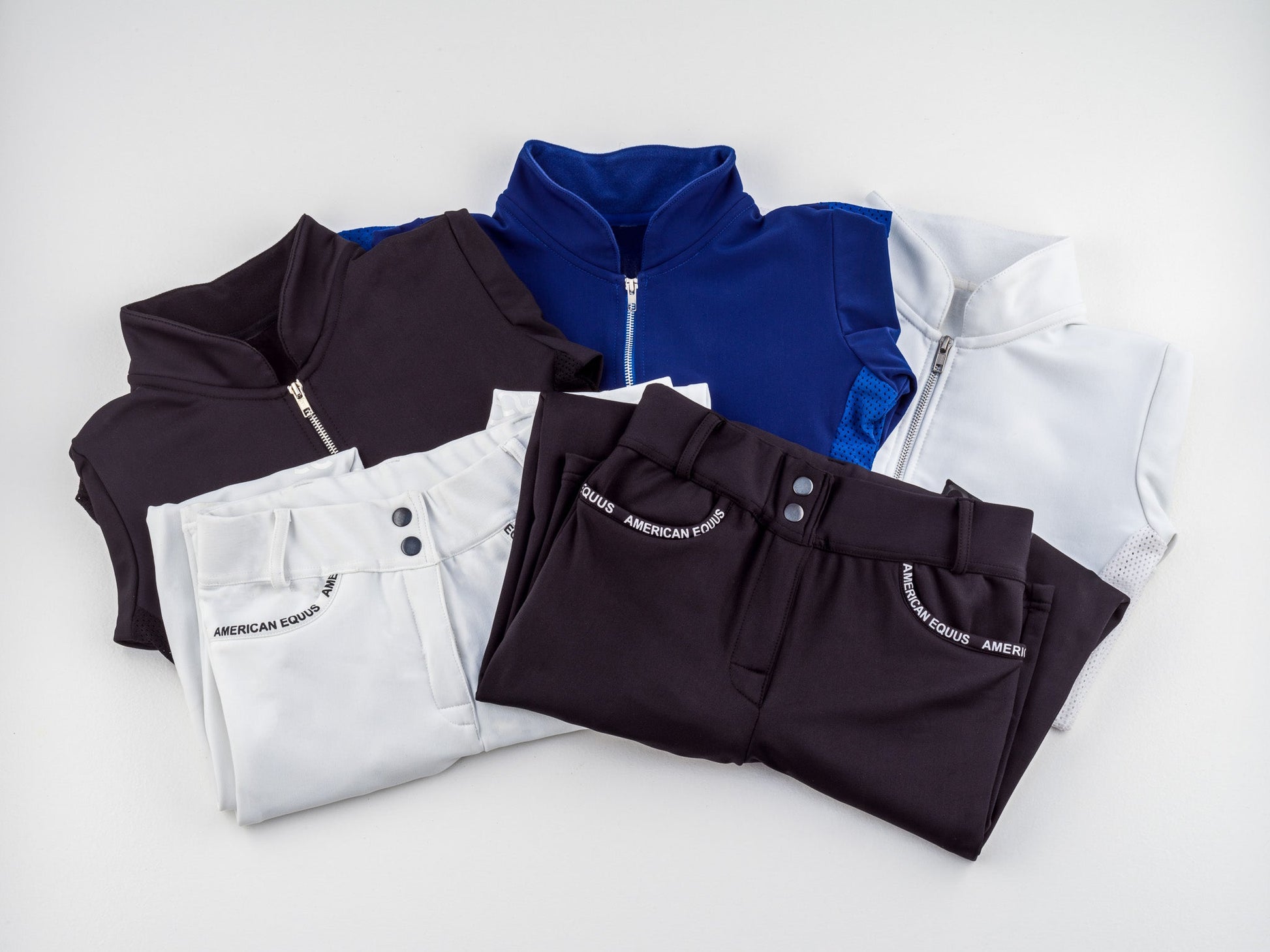 Our signature technical rider wear base layers are crafted of our ultra-soft breathable technical fabric, with fast moisture wicking properties and fleece lined for maximum Winter comfort. Carefully contoured seams across the back and waist provide an extremely flattering shape and allow complete freedom of movement. Finished with vented side fabric for ventilation and subtle AE branding on the Left forearm complete this simple sophisticated look. Available in Black, White and Royal Blue.