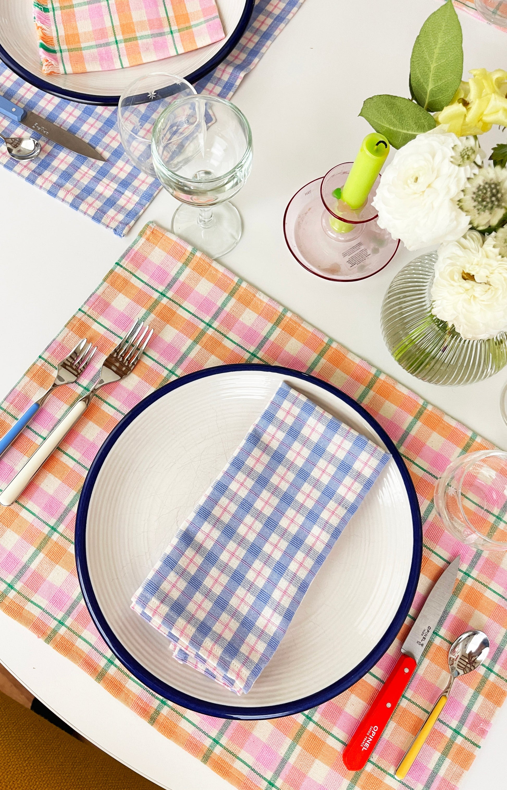 The Sofia plaid napkin is the perfect accent to add color and texture to any table setting. Stripes of periwinkle and pink are woven together to create this both seasonal and timeless piece. Ethically handwoven by artisans in Xela, Guatemala.