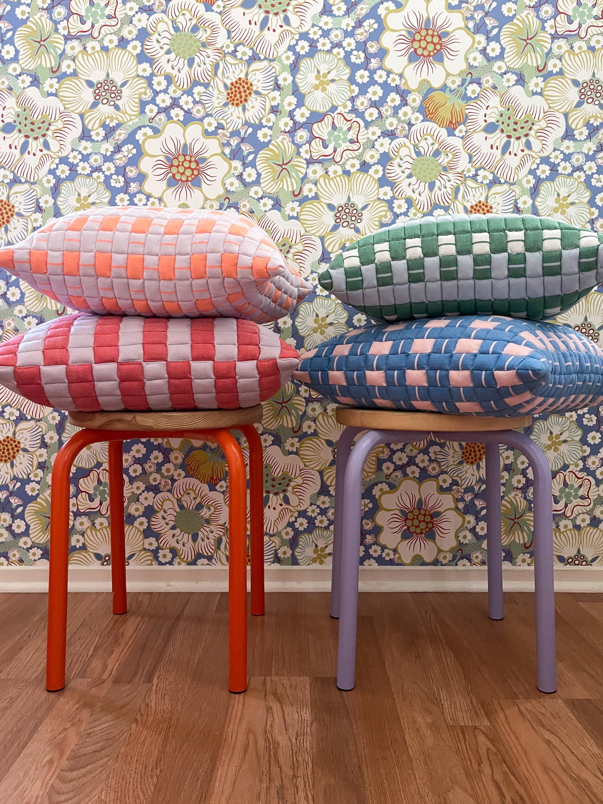 These gorgeous handwoven double-weave quilted pillows are hand made in Gujarat India. Now only three families in India make this specialized weaving style that dates back to the 1860s.