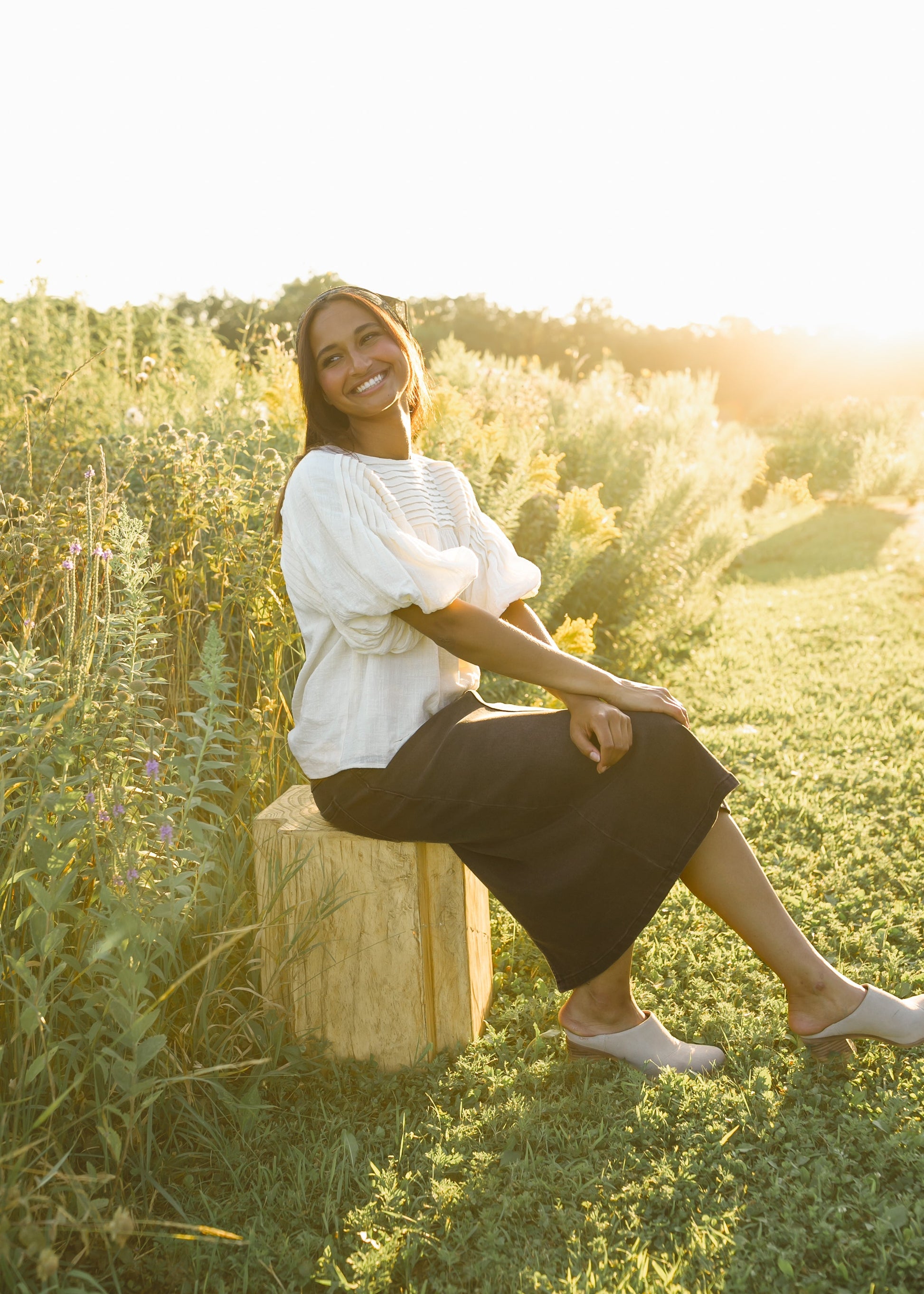 The Tiffany Raw Hem Midi Skirt is a versatile piece made for effortless, modest style. Crafted from soft black denim with a hint of stretch, it moves with grace through every season. The raw hem and button-front detail bring a modern touch, while the classic silhouette flatters beautifully. Designed with care and intention, this skirt is truly threaded with purpose™.