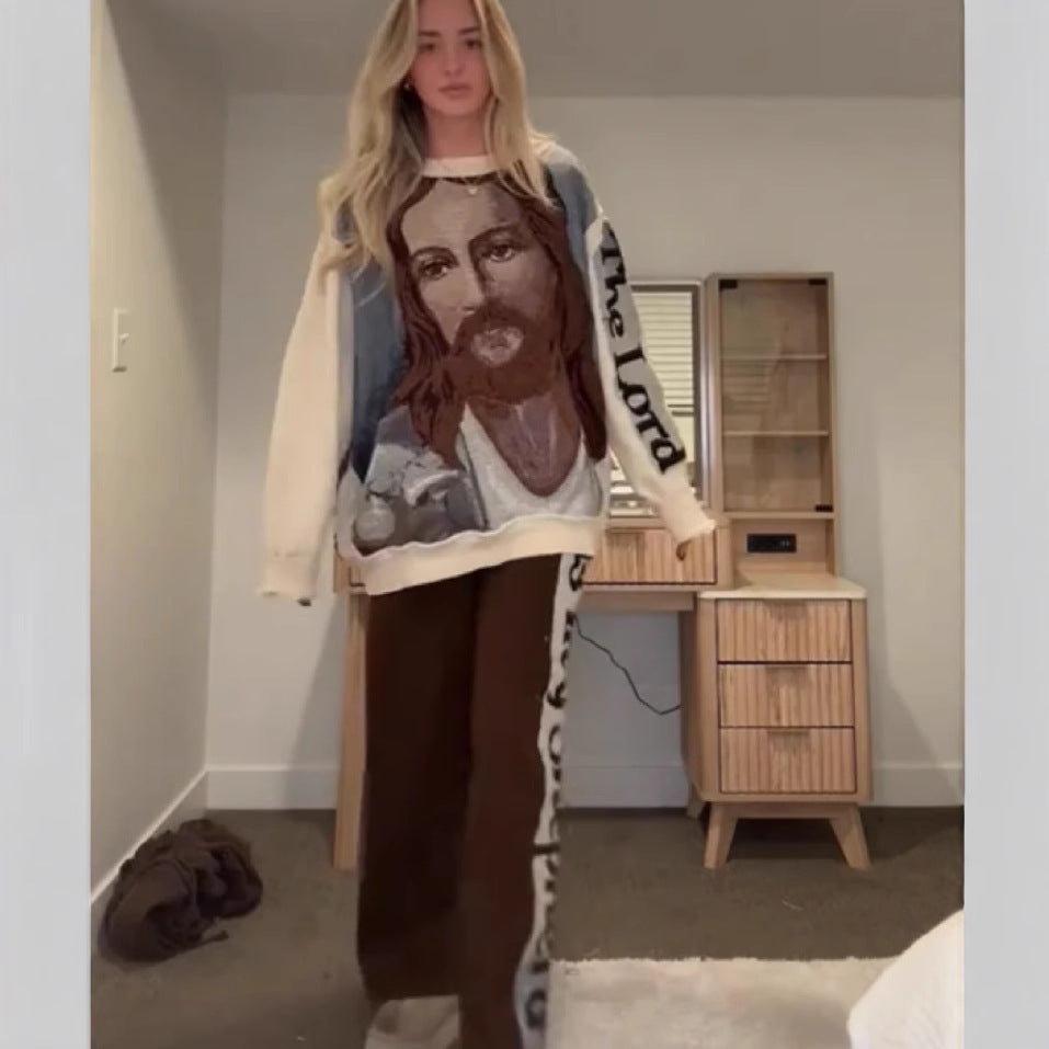 Trendy Round Neck Long Sleeve Digital Printing Suit