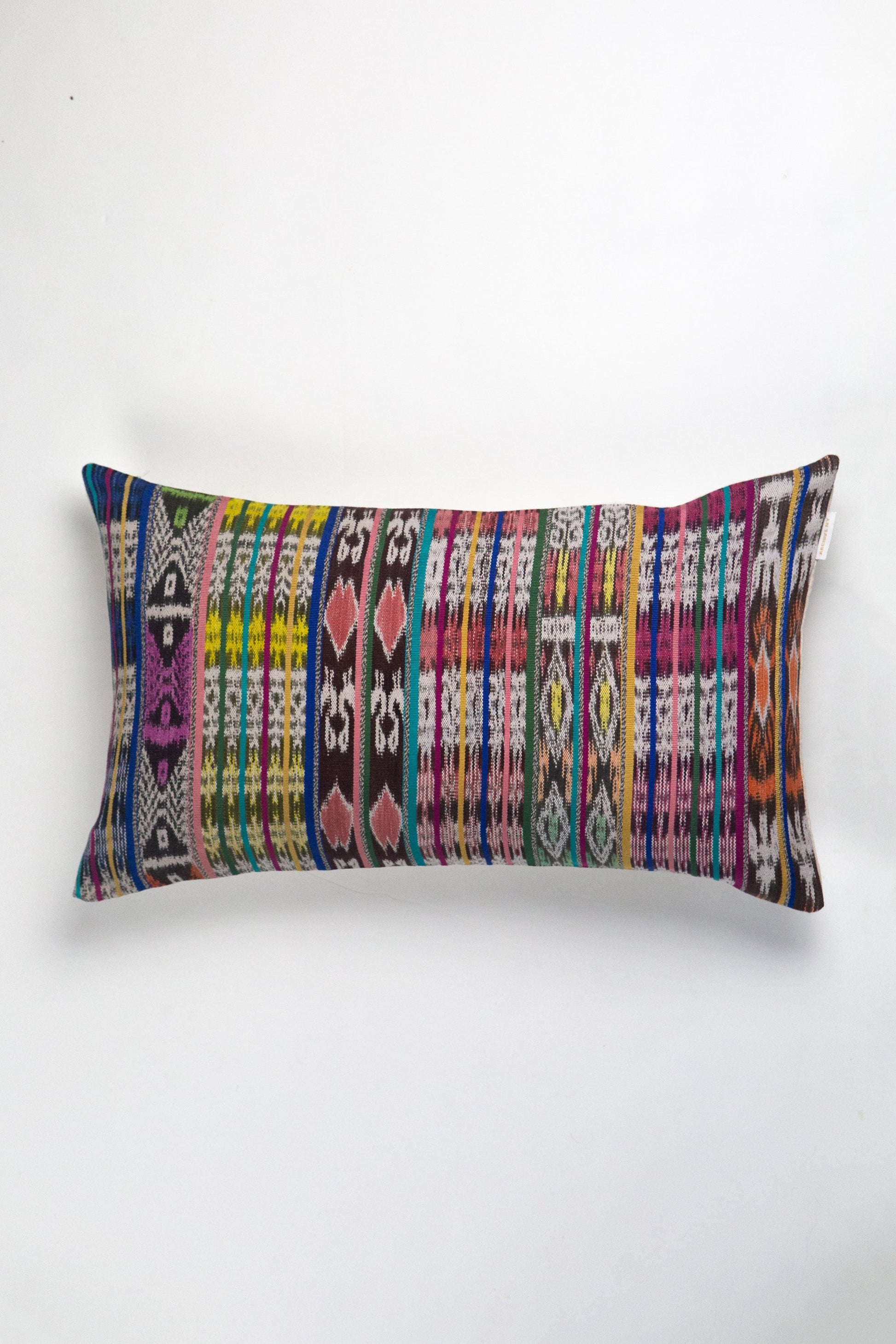 This vintage fabric was just too good to not make pillows with! A gorgeous Ikat pattered fabric, hand woven in a mix of burgundy, mauve, white, royal blue, magenta, soft yellow and peach will make the perfect accent to any decor style.