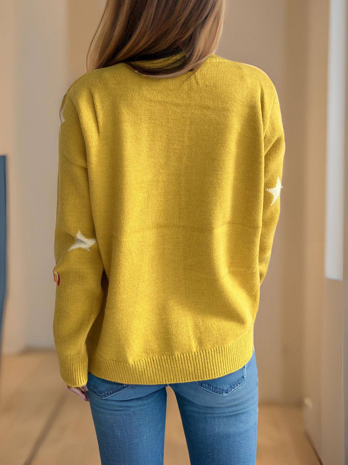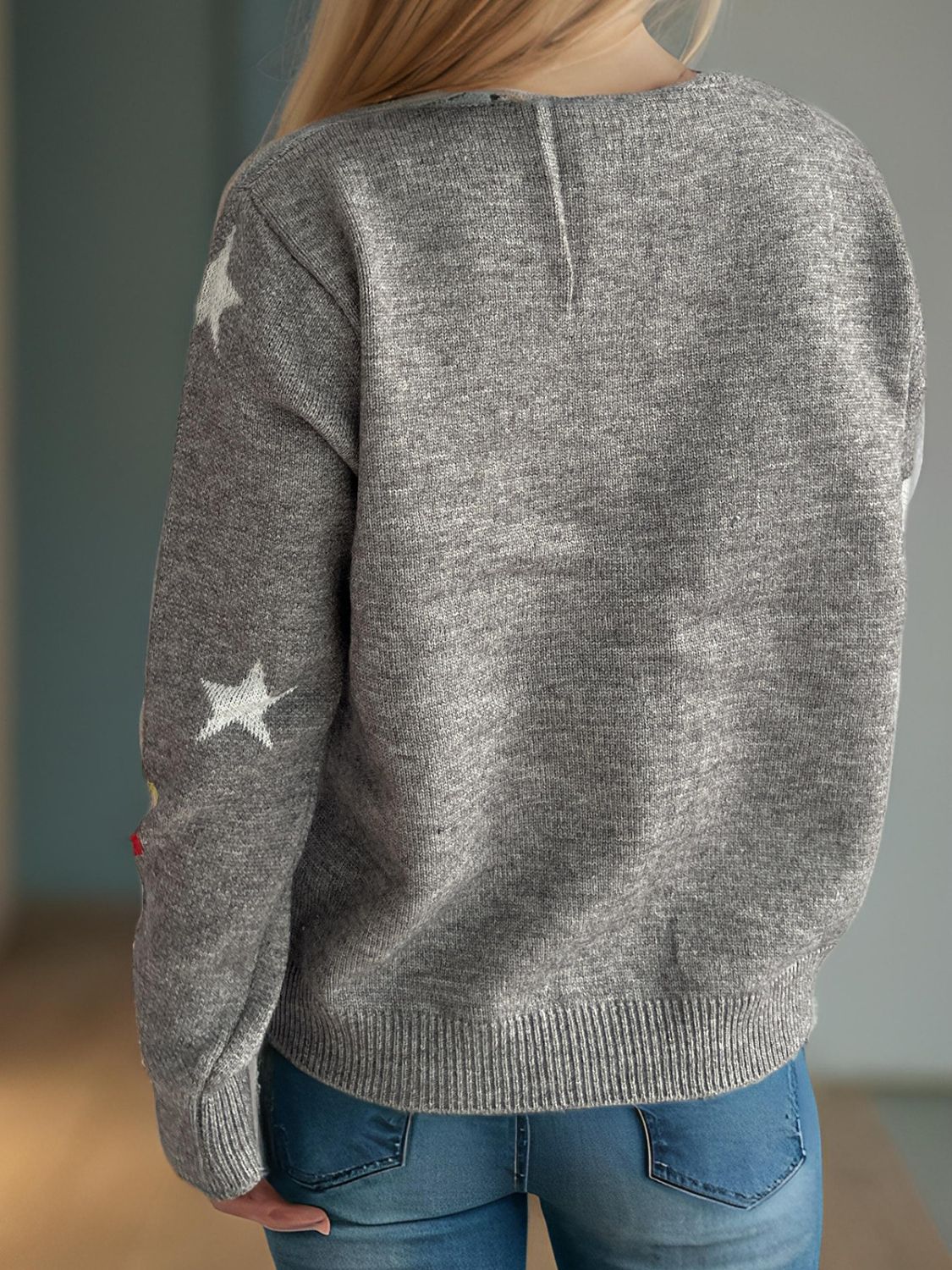 Women Candy Cane & Star Button Down Long Sleeve Christmas Cardigan