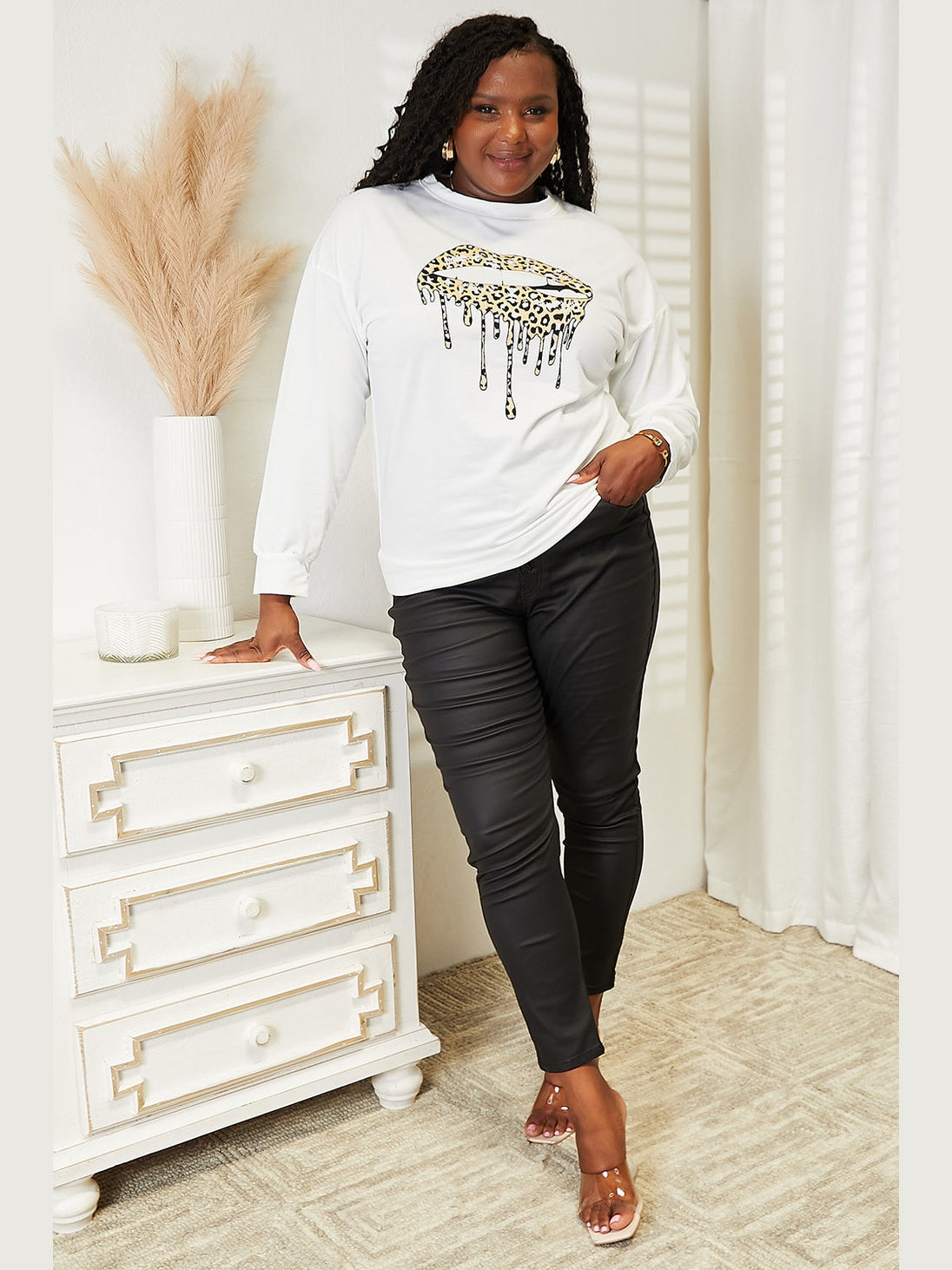 Women Simply Love Graphic Dropped Shoulder Round Neck Sweatshirt