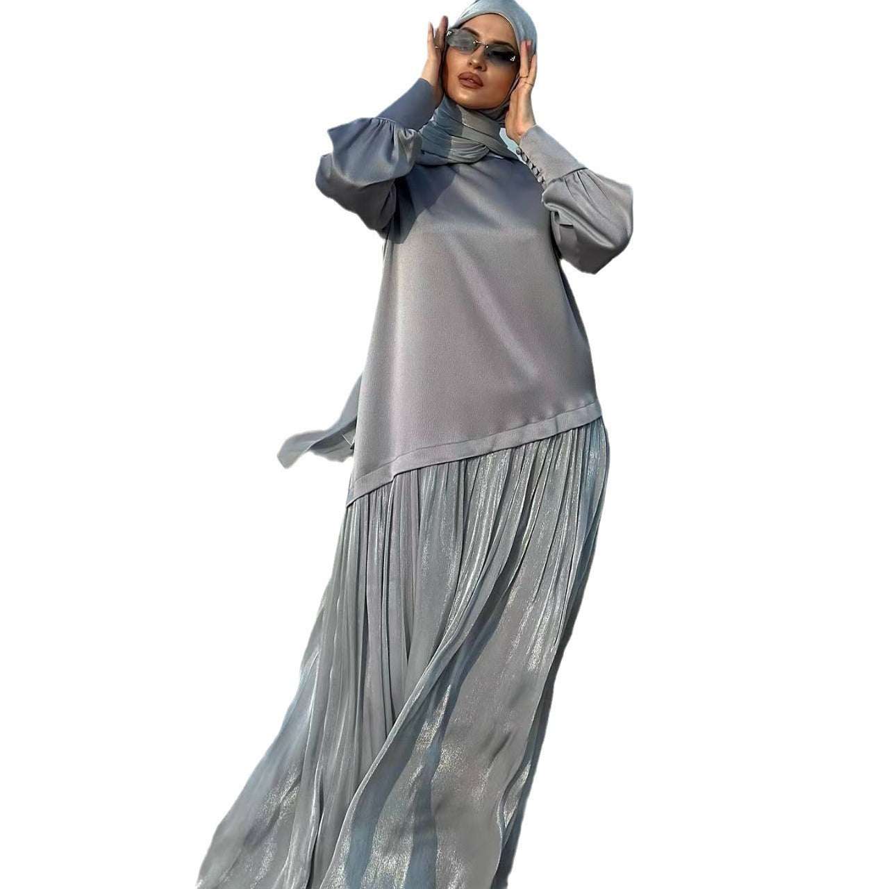 Women's Muslim Style Satin Stitching Design Elegant Fashion Dress