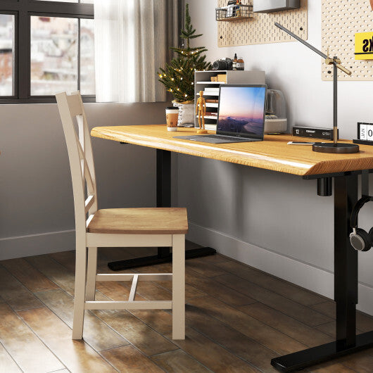 Wooden Dining Chairs Set of 2 with High Back and Rubber Wood Frame-Natural