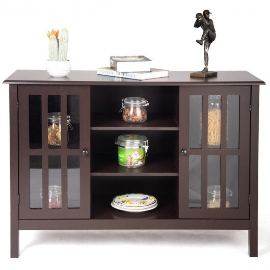 - ● The cabinet door features a glass window